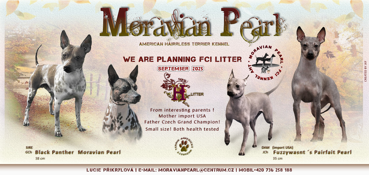 Začátkem září očekáváme narození štěňátek Amerického bezsrstého teriéra od naší importované fenky z USA.
