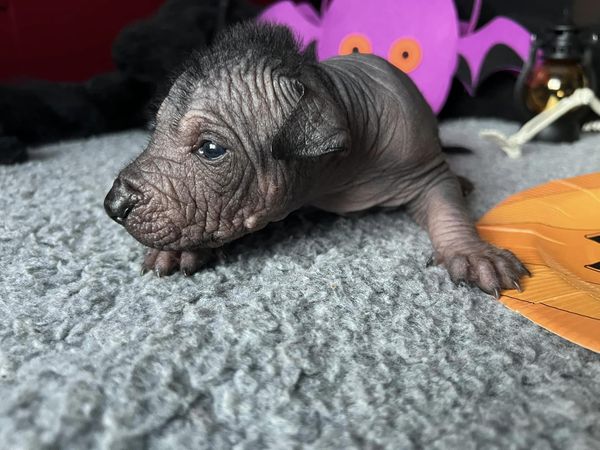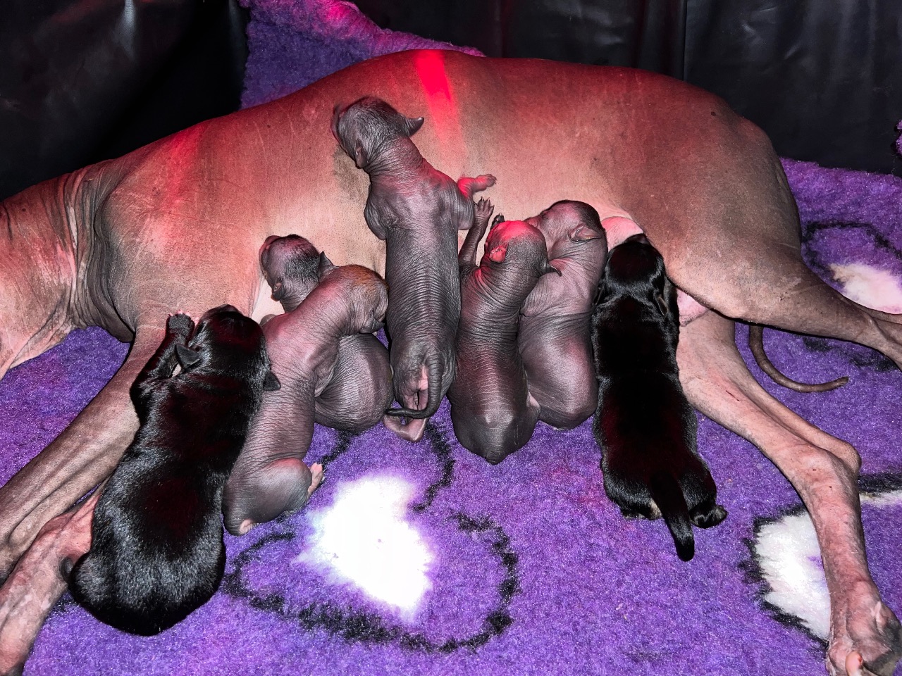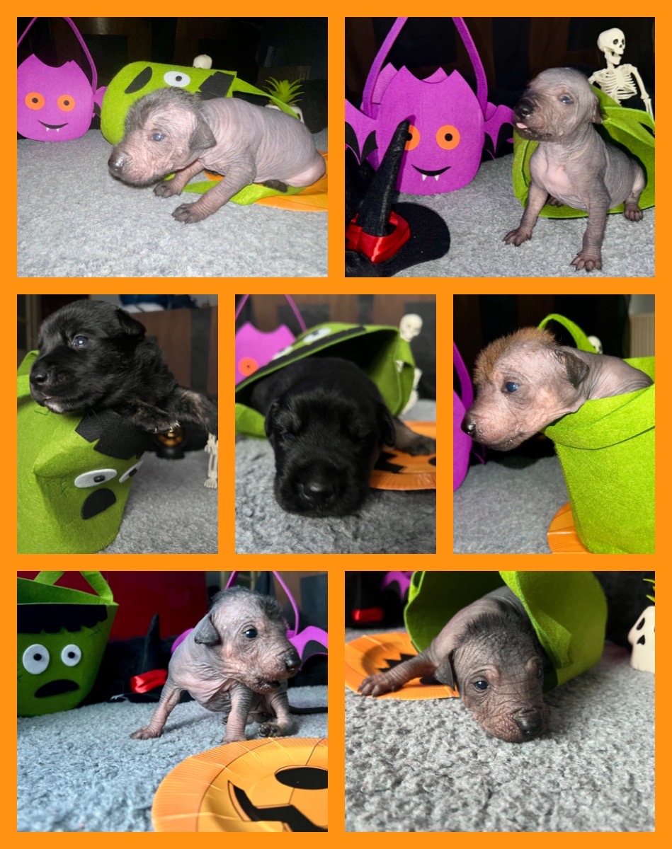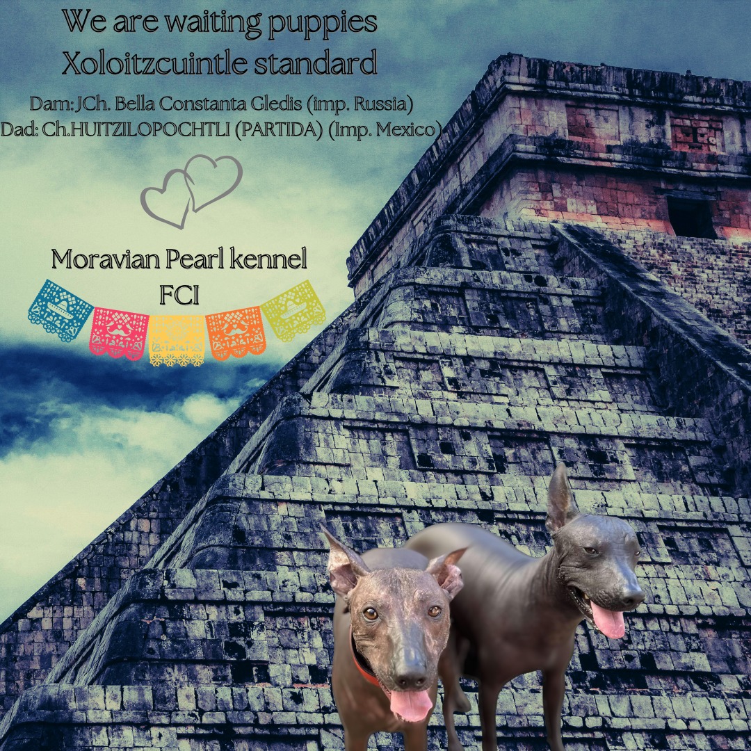 Tatínek Honza je import z Mexika a jsou to jeho první štěňátka, je to opravdu krásný mexický naháč pro mě ideální výšky a silné postavy. K Gině se typově hodí, proto předpokládám menší xolíky cca do 57 cm se silnou kostrou a krásnou hlavou.