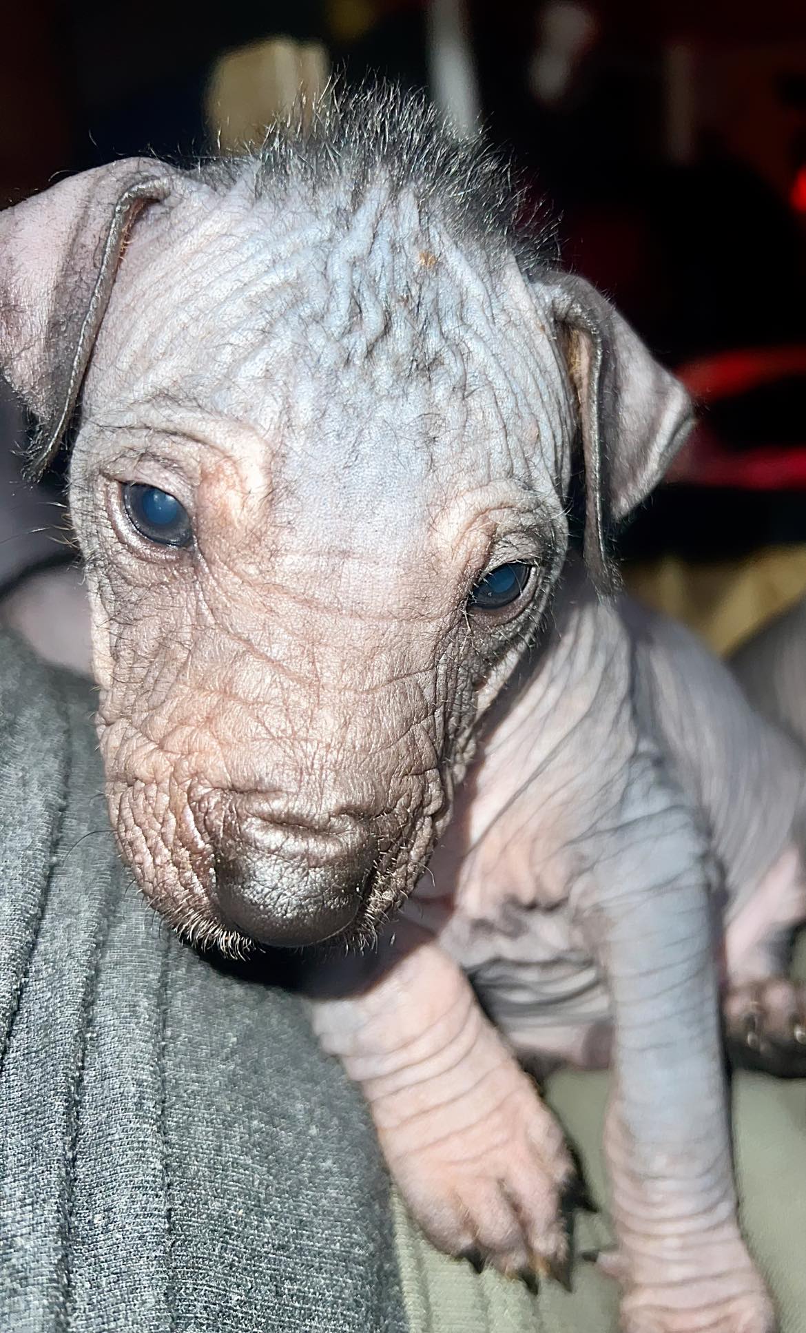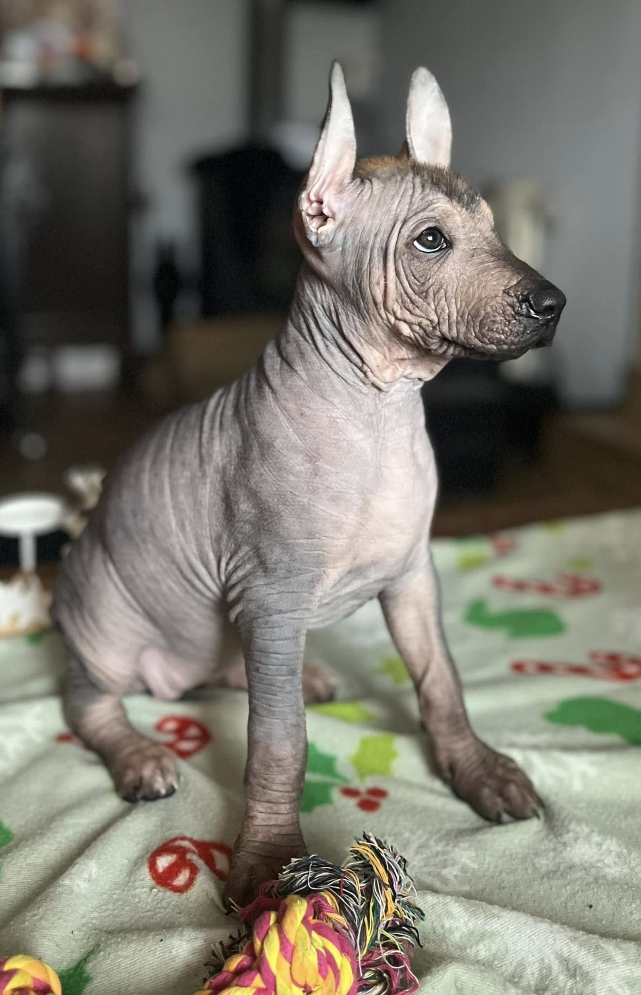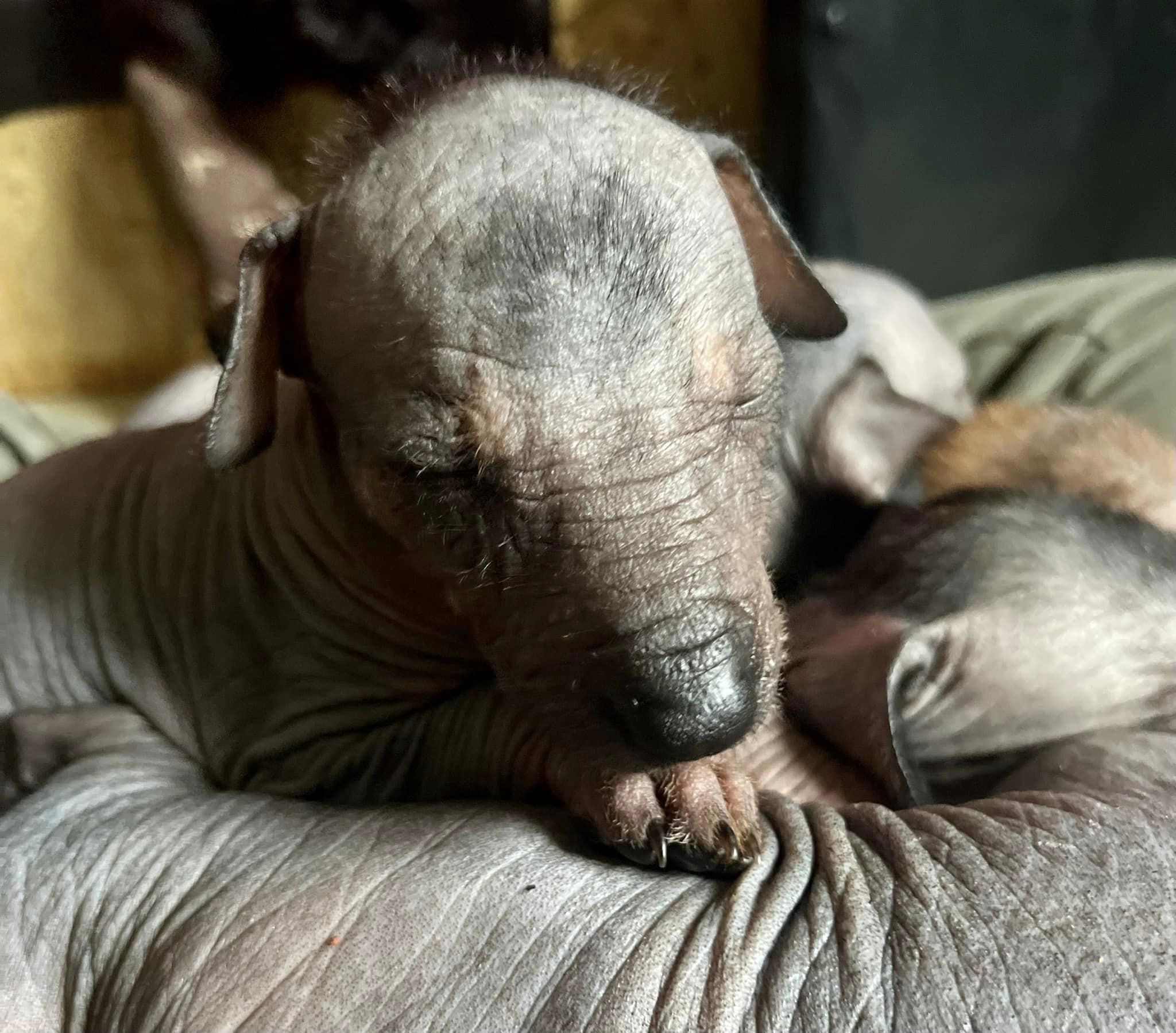 Tatínek Honza je import z Mexika a jsou to jeho první štěňátka, je to opravdu krásný mexický naháč pro mě ideální výšky a silné postavy. K Gině se typově hodí, proto předpokládám menší xolíky cca do 57 cm se silnou kostrou a krásnou hlavou.